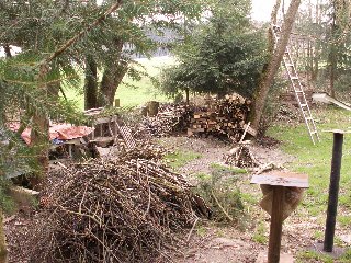 Neely hat mit Willy und Pjotr im Herbst und Winter reichlich Bäume gefällt....mehr Licht und Sonne und etwas weniger Feuchtigkeit für den Einberg....und in der Grillecke bei Ronny´s Cafe reichlich Holz für lauschige abendliche Lagerfeuer....