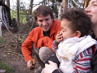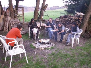 Erster Grillabend... der Winter war verdammt kalt und lang...erst Ende April fand der erste Grillabend statt...Pablo, der 1979 auf dem Einberg geboren wurde und jetzt in Trancoso/Brasilien lebt, war zu Besuch und spielte den Grillmeister.....