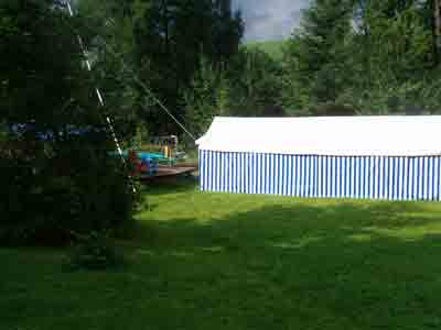Für Besucher, die übernachten wollten und einen Schlafsack dabei hatten, standen Zelte als “dormitory zur Verfügung