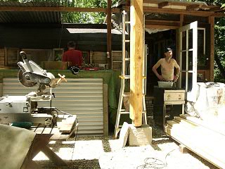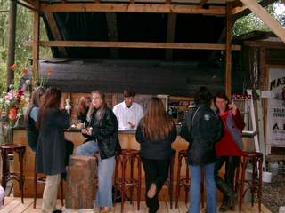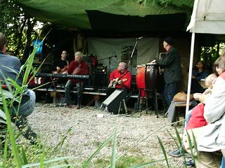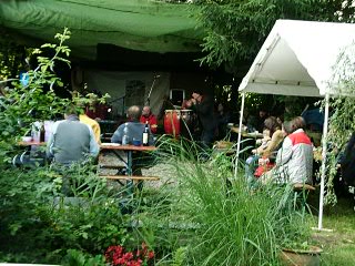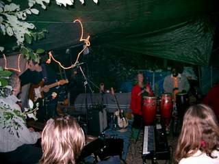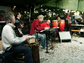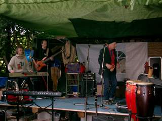 ....am Dienstag kommen unsere beiden Klangtempel-Helden Ronny und Pravaha auf die Idee am Samstag die “Einberger-Musiktage” aus der Taufe zu heben...keine Bühne...kein Dach ...kein Strom...kein Plan ..... und eine üble Wettervorhersage....das wird schon, meint Ronny.. und siehe da, eine günstige Holzquelle wird aufgetan,einige helfende Hände kommen im Laufe der Woche dazu, die Bühne wird gebaut, der kenntnisreiche Robert nimmt sich der Technik an und Freitag Abend/Nacht wird das Dach und der Boden für die Freiluft-Bar fertig..