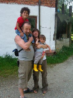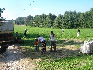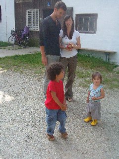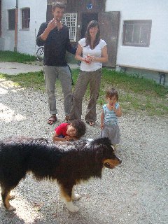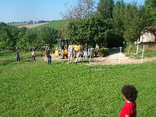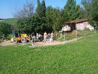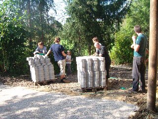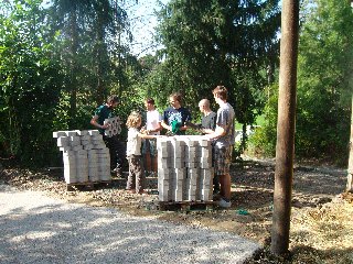 Seit Jahren versucht Gerold den Weg für die Pferde vom Stall auf die Weide zu befestigen.Etliche LKW-Ladungen Kies wurden aufgeschüttet, aber nach kurzer Zeit versanken die Pferde beim Gang auf die Weide wieder tief im Einberger Lehmboden. Nun soll endlich eine Lösung für das Problem her und Gerold hat etliche qm Rasensteine bestellt und karrte mit dem LKW von seinem Chef etliche Ladungen Kies heran. Die “Guggenberger” vom Nachbarhof rückten mit Bagger,Gabelstapler etc und”know how” an und die “2te Einberg Generation” ,soweit gerade anwesend, packte kräftig mit an. (Schwere Steine, die “Alten” habens alle schon am Kreuz und halten sich gern zurück) Jetzt haben die Pferde endlich eine hindernisfreie “Rennbahn” zu ihren Weiden
